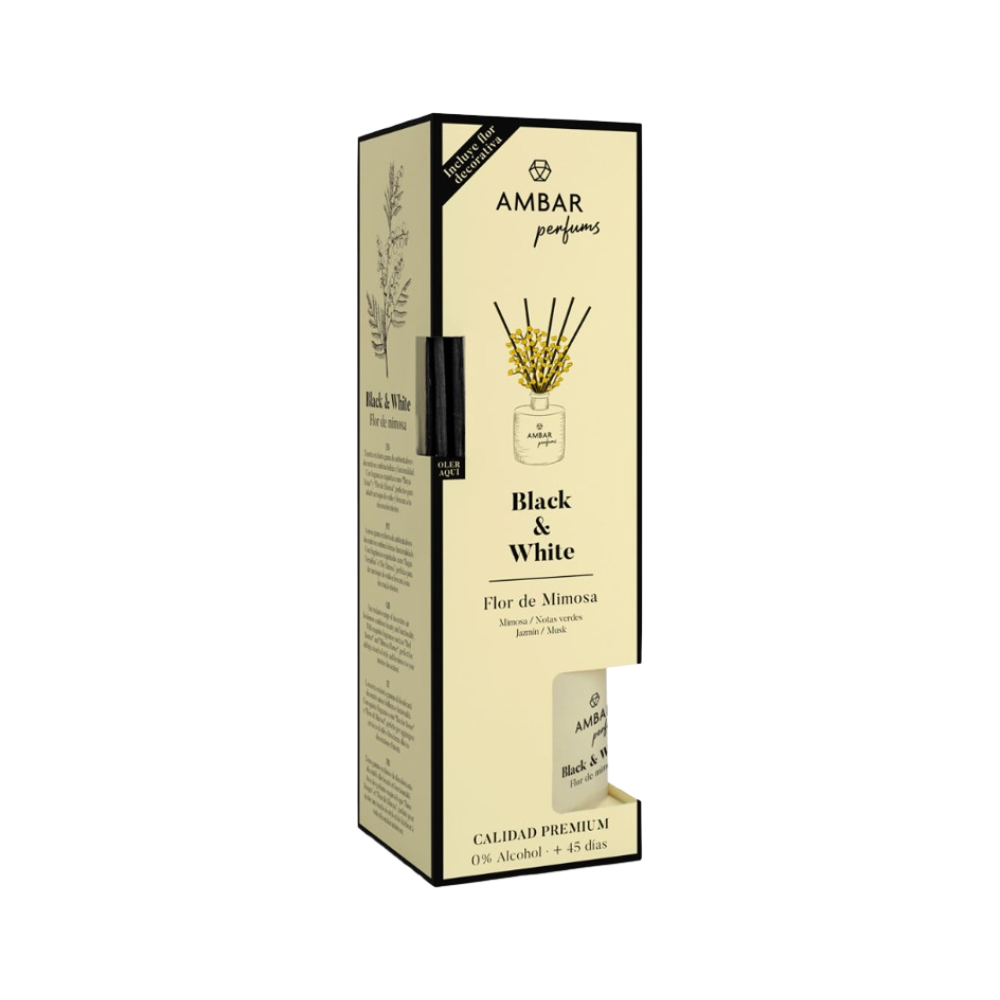 O mikado Mimosa Flower da coleção Black & White transporta você para um jardim florido com sua fragrância sofisticada e reconfortante. Suas notas de topo de mimosa e notas verdes, um coração de jasmim e uma base de almíscar suave criam uma combinação perfeita para preencher seus espaços com serenidade e estilo. Com um design decorativo minimalista e uma flor delicada, este mikado não só perfuma, mas também decora a sua casa.